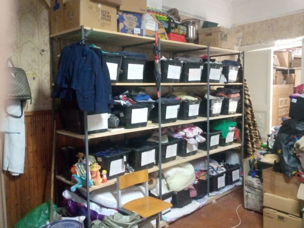 Появились помещения и встала задача превратить их в полноценный склад, оборудованный стеллажами и ящиками для хранения одежды и других вещей. Тогда можно и хранить, и передавать вещи нуждающимся в надлежащем виде. Удобно находить нужное.